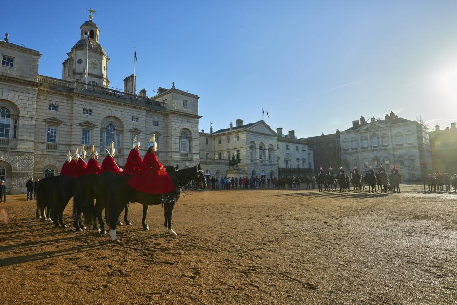 Horse guard exchange ceremony at the horse guard parade, a 'Short Guard' is mounted when the Queen is not in residence at Buckingham Palace.